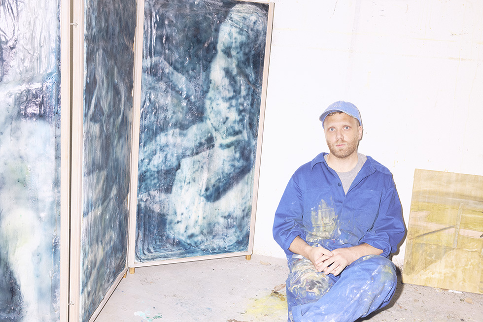Främst arbetar han med måleri, där färgen behandlas som ett fysiskt material – bearbetad, manipulerad och formad till både abstrakta och avbildande uttryck. Inspirerad av brottsplatser, arkivmaterial, film och internetforum låter han välbekanta miljöer träda fram i målningar som rör sig mellan fiktion och verklighet.