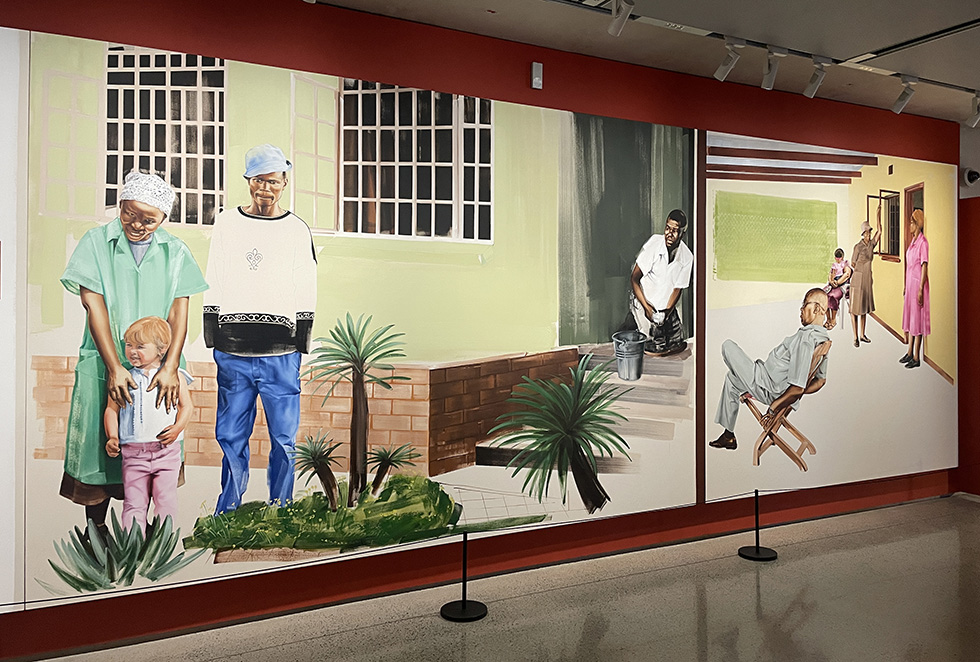 Meleko Mokgosi från Botswana inleder exposén med monumentalmålningen Pax Kaffraria: Graase-Mans, 2014. Duken är drygt två meter hög och nästan nio lång. Pax är fred på latin, men har ofta använts i sammanhang av makt och kontroll. Kaffraria är ett kolonialt område i Sydafrika bildat av det rasistiska ordet kaffir. Graase-Mans är gräs-män på afrikaans, som gräsrötter eller människor knutna till marken. I målningen syns tjänsteandar, svarta människor i uniformer eller enklare kläder som utför hushållssysslor. En svart kvinna håller händerna förtroligt på ett vitt barns bröst, en pojke som kanske har mer kontakt med de anställda än med föräldrarna i huset. Den bräckliga freden som vilar på underordning. De vitas vingliga makt byggd ovanpå de svartas arbete.