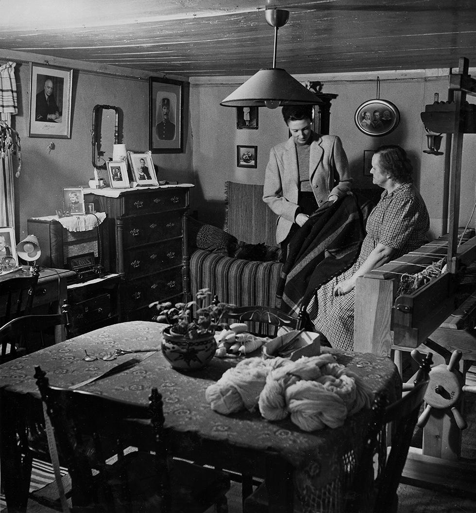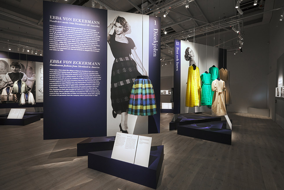 Installationsvy, "Ebba von Eckermann – handvävt mode från Sörmland till Amerika". Foto: Björn Dahlgren
