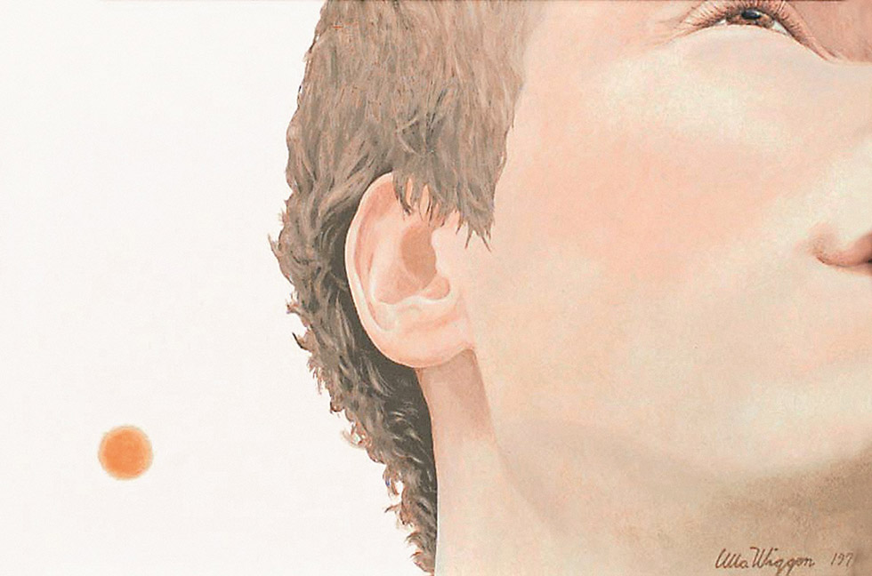 Relationen mellan det inre och yttre – såväl materiellt som själsligt – är central. Sedan 1969 har människan varit ett återkommande motiv, vilket under 2010-talet även innefattade detaljerade skildringar av inre organ. Dessa Intra-målningar befinner sig mellan det hyperrealistiska och fullständigt fiktiva – i en surrealistisk anda. De senaste åren har Wiggen uppmärksammats stort för sina Iris-målningar, som tillsammans med ett urval elektronikmålningar visades på Venedigbiennalen 2022. Ulla Wiggen är född 1942 och bor och arbetar i Stockholm.
