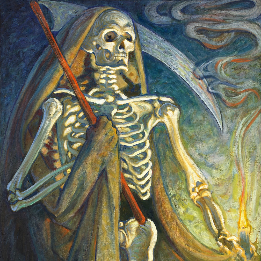 Tyra Kleen, Skelettet bakom dörren, Liemannen Doden. 1909. Riddarhuset Välinge gård. Foto: Mats Arvidsson
