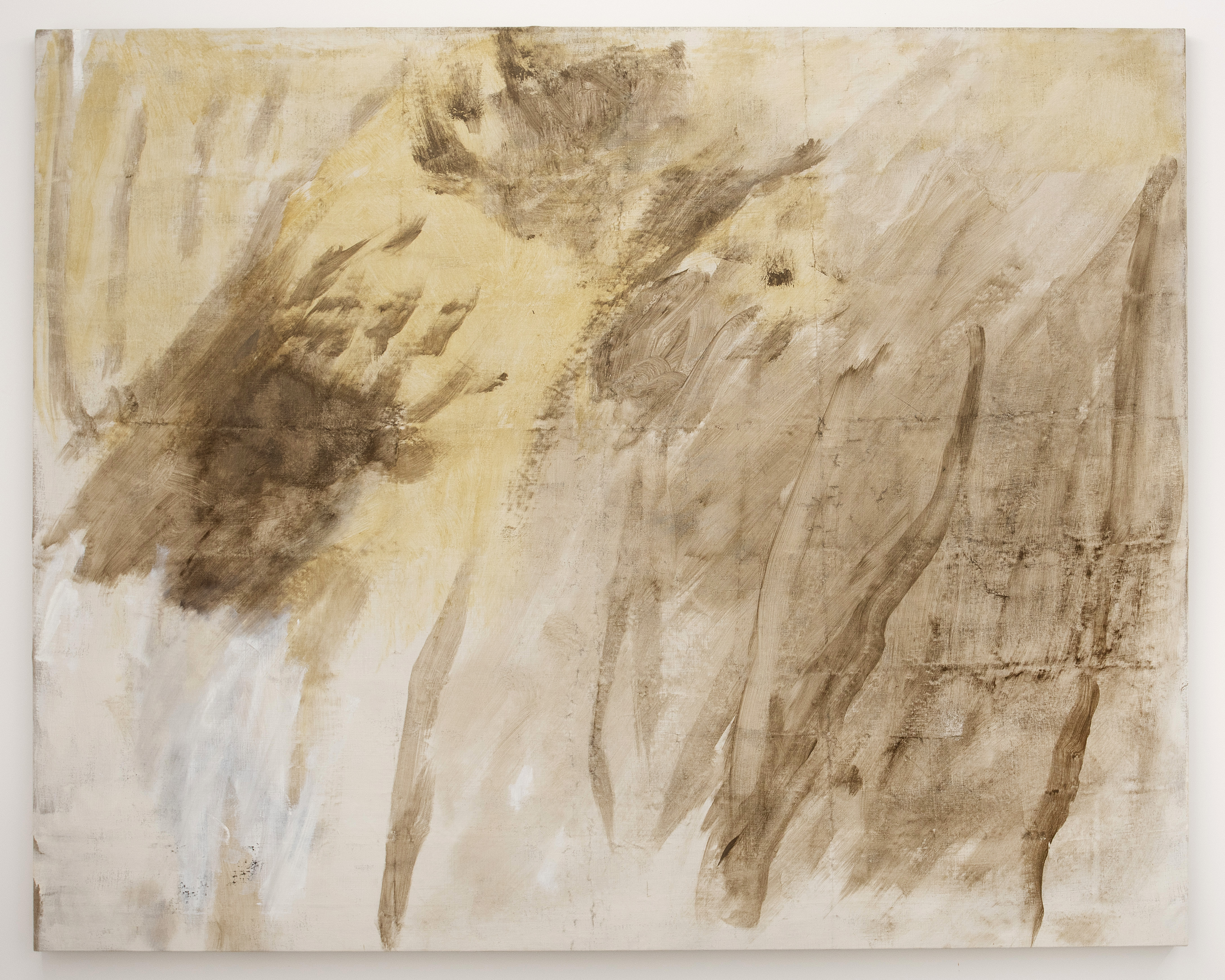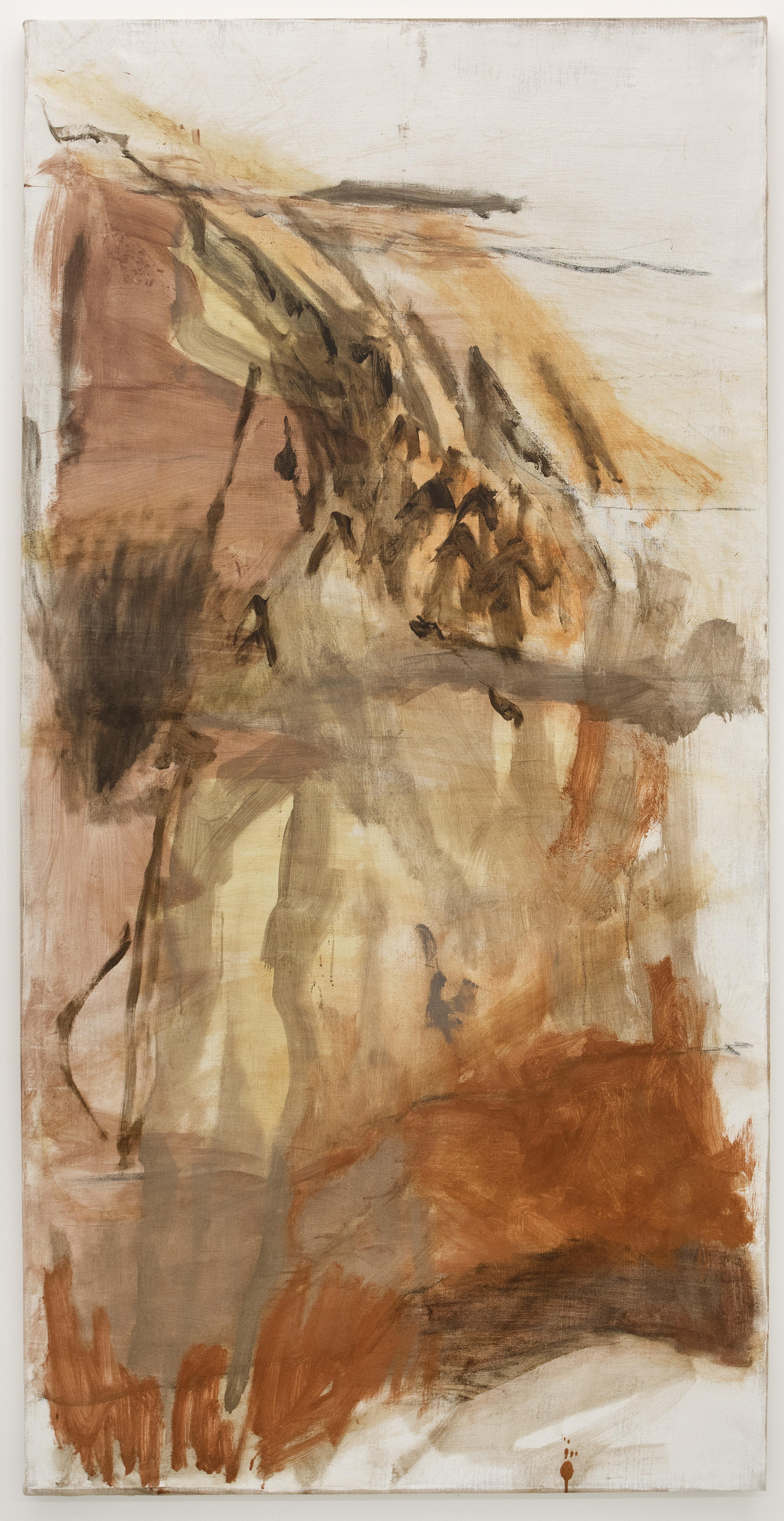 Selma Sjöstedt, Teckning, 2025, äggoljetempera på duk, 122x244cm, Installationsvy, Galleri Arnstedt.
