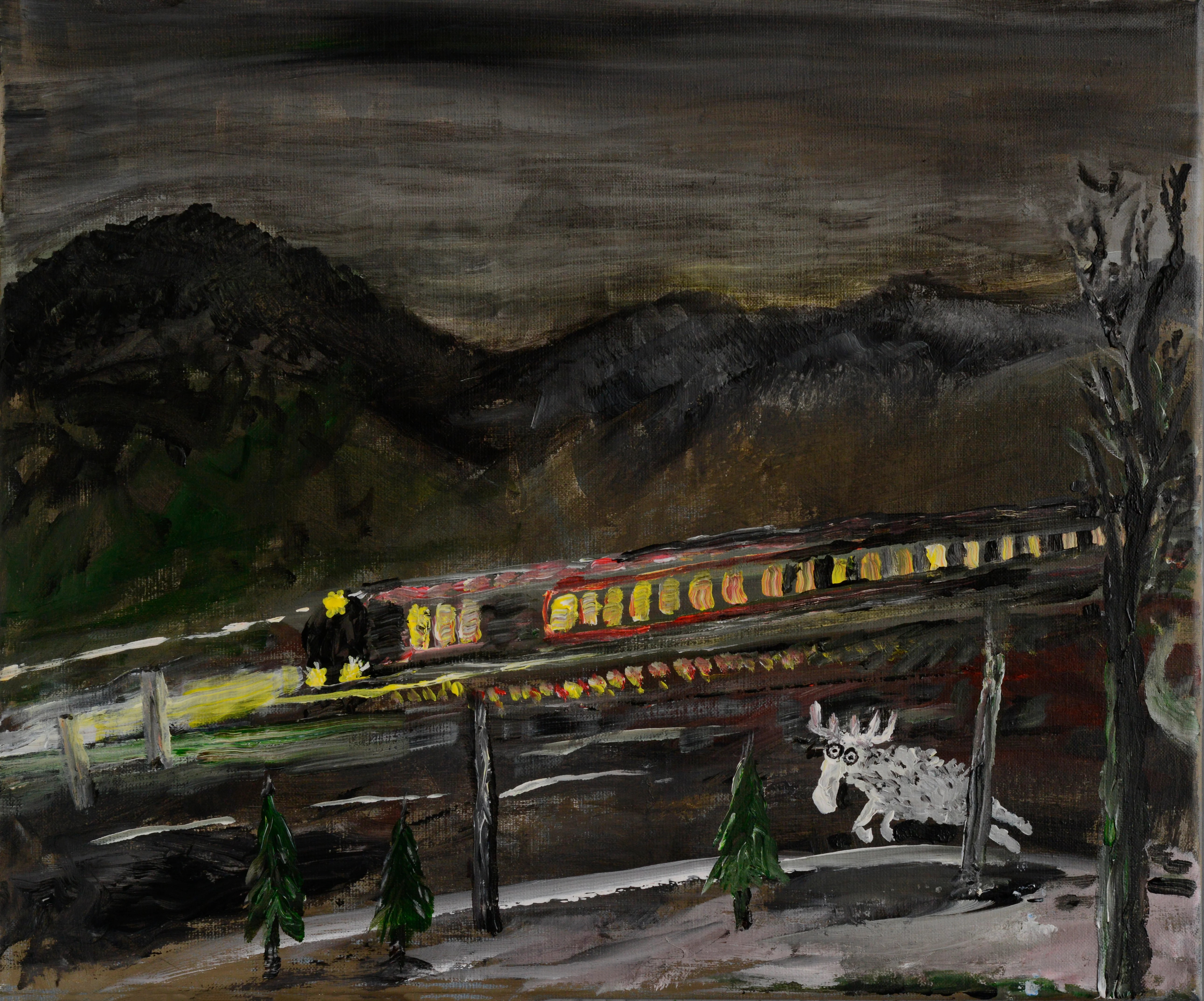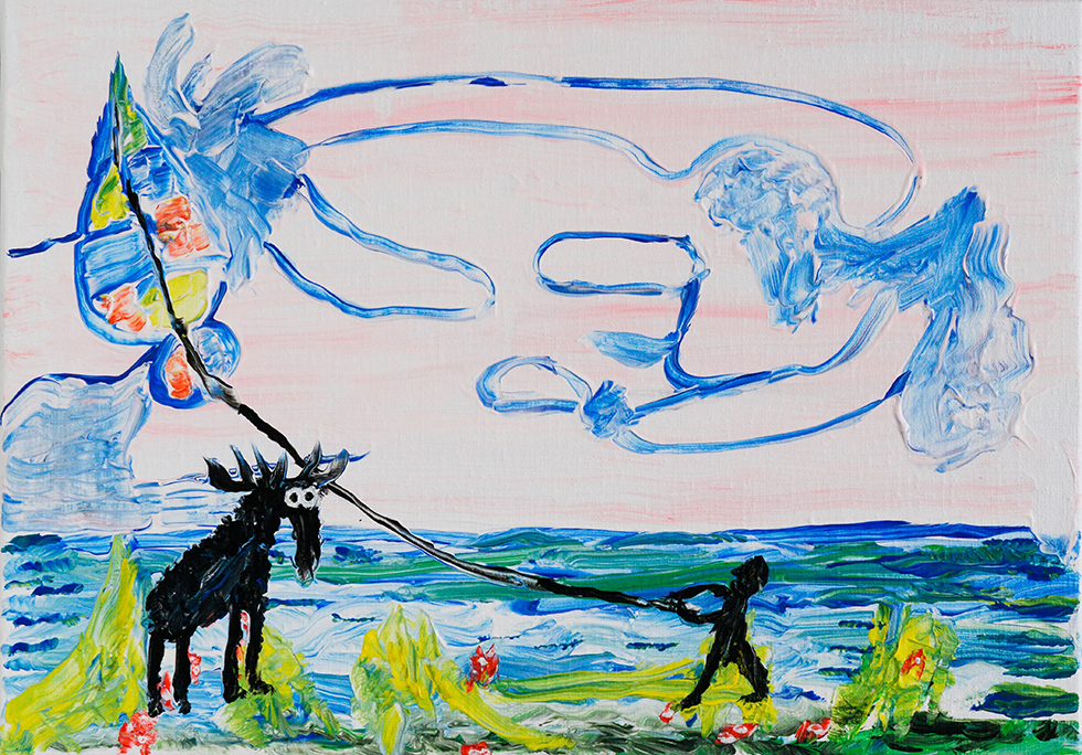 Carl Johan De Geer, Drakflygaren- fritt efter Sven X:et Erixson, akryl på duk, 32 x 45 cm