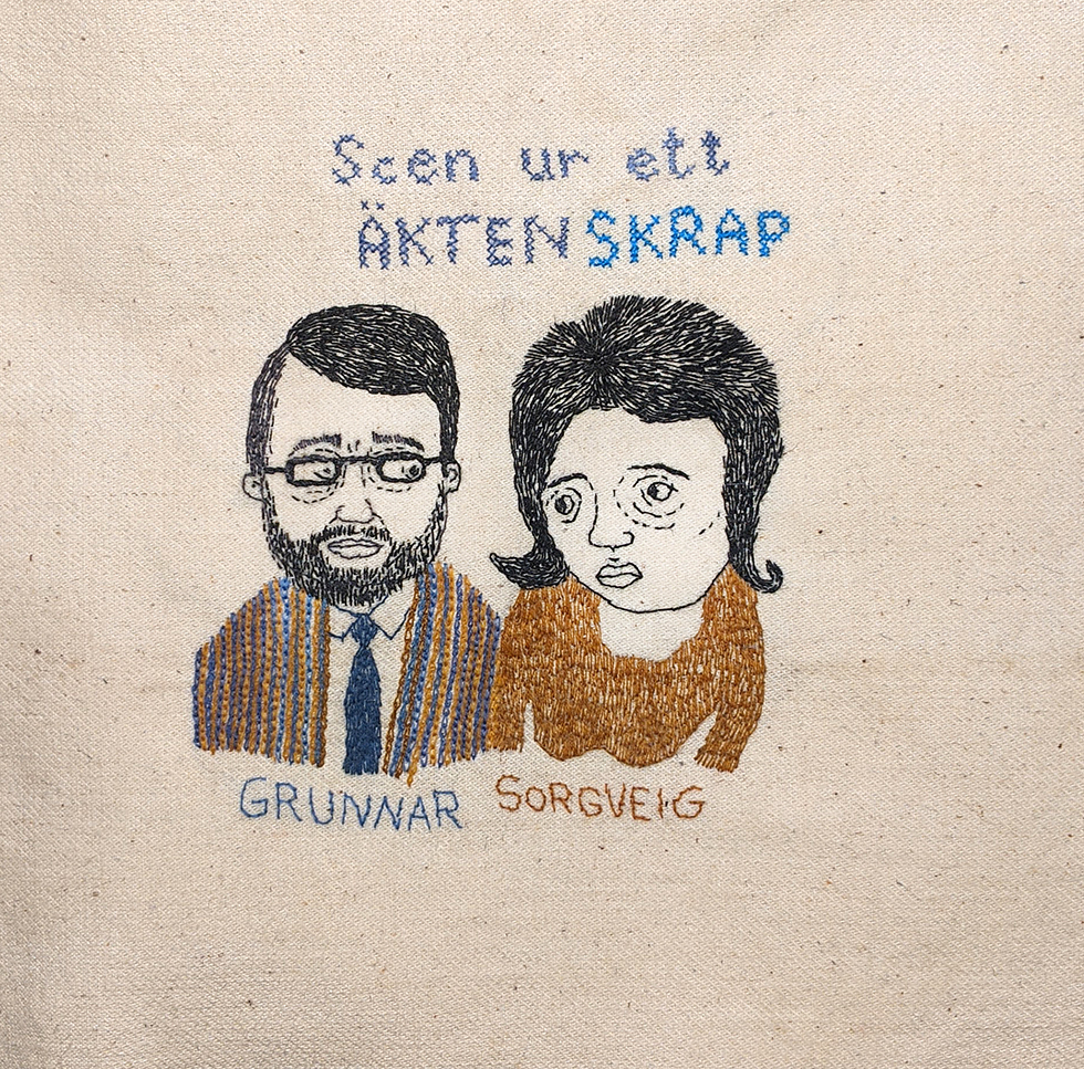 Nyhetsflasharnas snabba tempo är en central inspirationskälla i Lotta Sjöbergs broderi. I kontrasten mellan det flyktiga nyhetsflödet och ett långsamt, handgjort hantverk växer politiska kommentarer fram, formulerade som textila dagsverser.