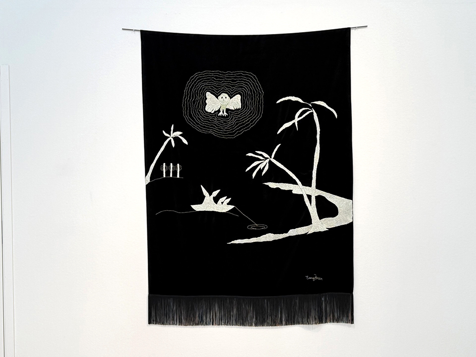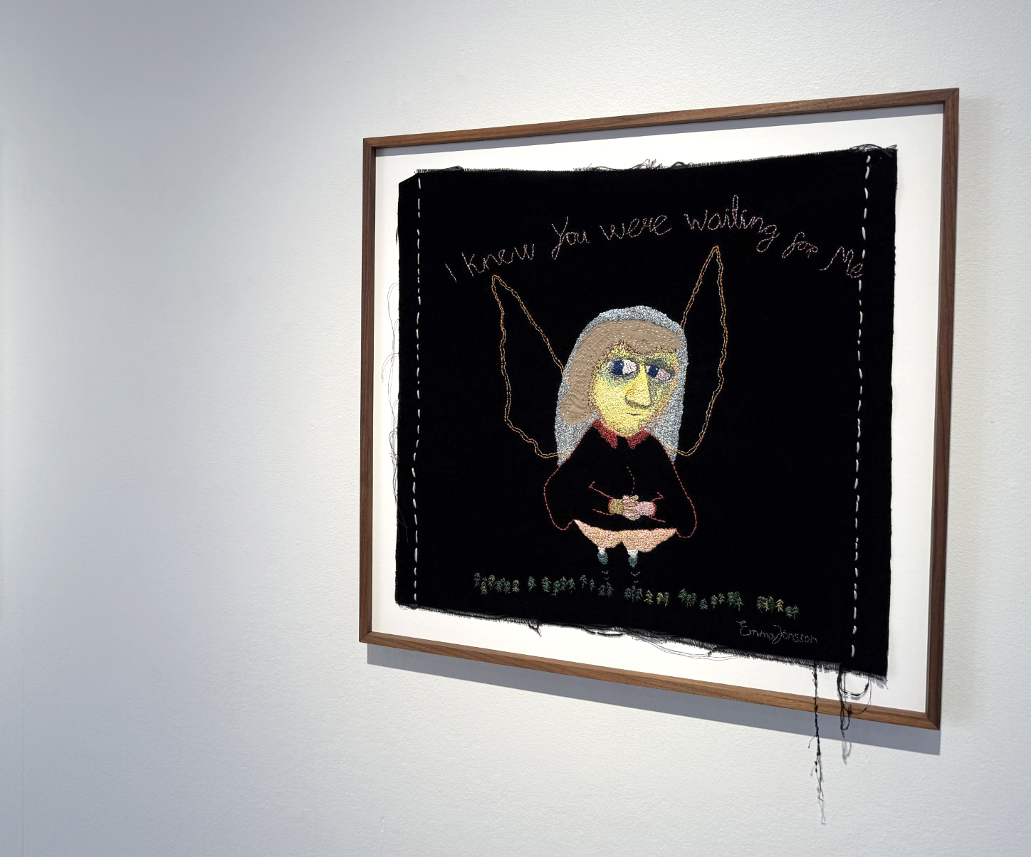 Emma Jönsson är en konstnär som broderar vår värld. Hon skapar strukturer, demoner, människor – animerar sorg och vårt eviga hopp. Små stygn fyller skenbar tomhet med mening, bygger nya världar och bekämpar mörkret. Hon vill rikta ljuset mot de döda, de svaga. När hon broderar skapar hon en värld som är hennes egen, som hon vill dela med alla, som vi betraktare också kan fyllas med förundran över.
