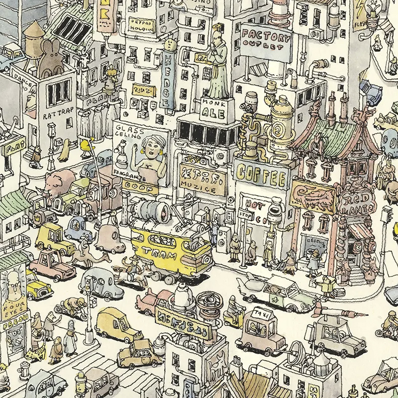 Mattias Adolfsson (f. 1965) är en svensk illustratör och konstnär, bosatt i Sigtuna. Efter mer än tio år inom datorspelsbranschen bytte han bana och började arbeta med analog illustration. I dag är Adolfsson internationellt känd för sina fantasifulla och detaljrika teckningar och skissböcker. Hans bildvärldar – ofta fyllda av märkliga robotar, djur och arkitektoniska drömlandskap – kombinerar humor och absurditeter med populärkulturella referenser.