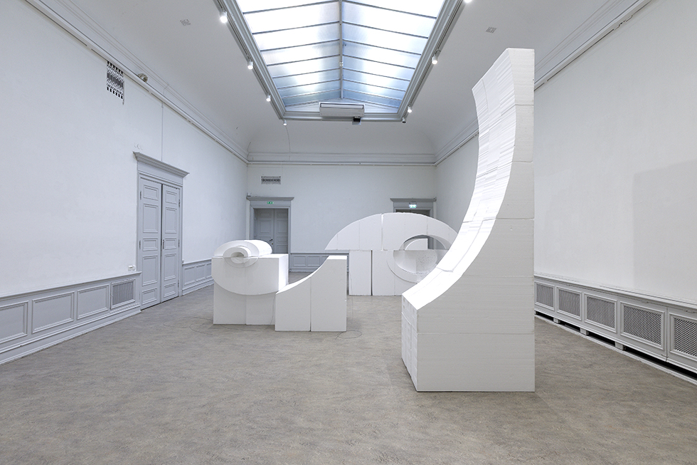 "Det går att urskilja en kontinuerlig linje, men den är uppbruten och kraftigt förskjuten. Den lätta cellplasten vadderar och skyddar. Den håller om ett avstånd och kontrasterar mot stålvajrarnas beslutsamhet. Det pågår en rumslig förhandling om vad som är permanent och vad som är förgängligt, om konstruktionens betydelse och vad som skiljer insida från utsida.