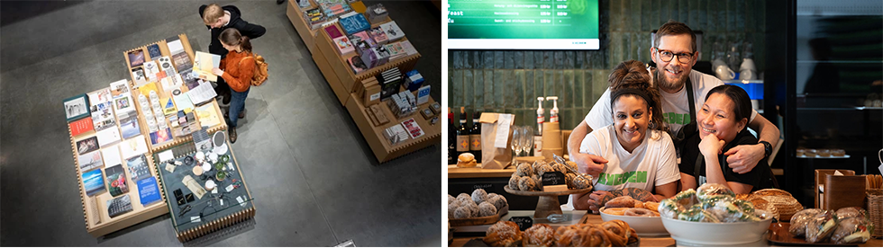 Böcker, utställningskataloger, smycken, keramik, tidskrifter, affischer, vykort och andra bildsouvenirer hittar du i Bildmuseets butik.