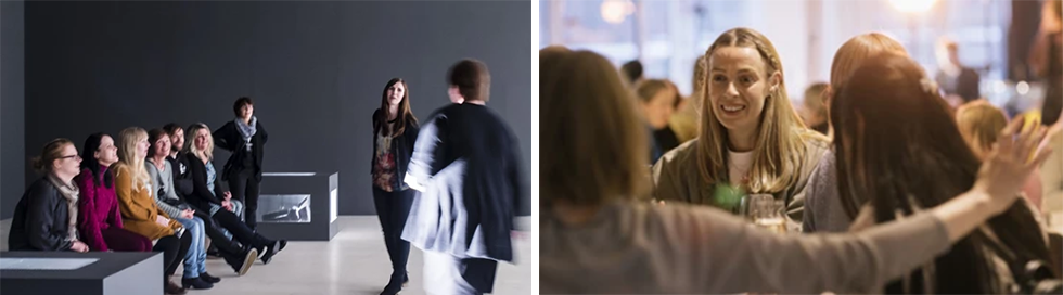 Visningar: En guidad tur erbjuder nya insikter i konsten. Kom själv eller ta med en vän, och välkommen att kombinera lunchvisningen med ett besök i restaurangen.