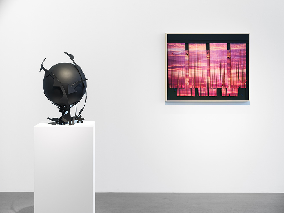 I förgrunden syns Data Point Curtain CO2 med Scrupulus i bakgrunden, Bigert & Bergström. Cecilia Hillström Gallery, Stockholm.