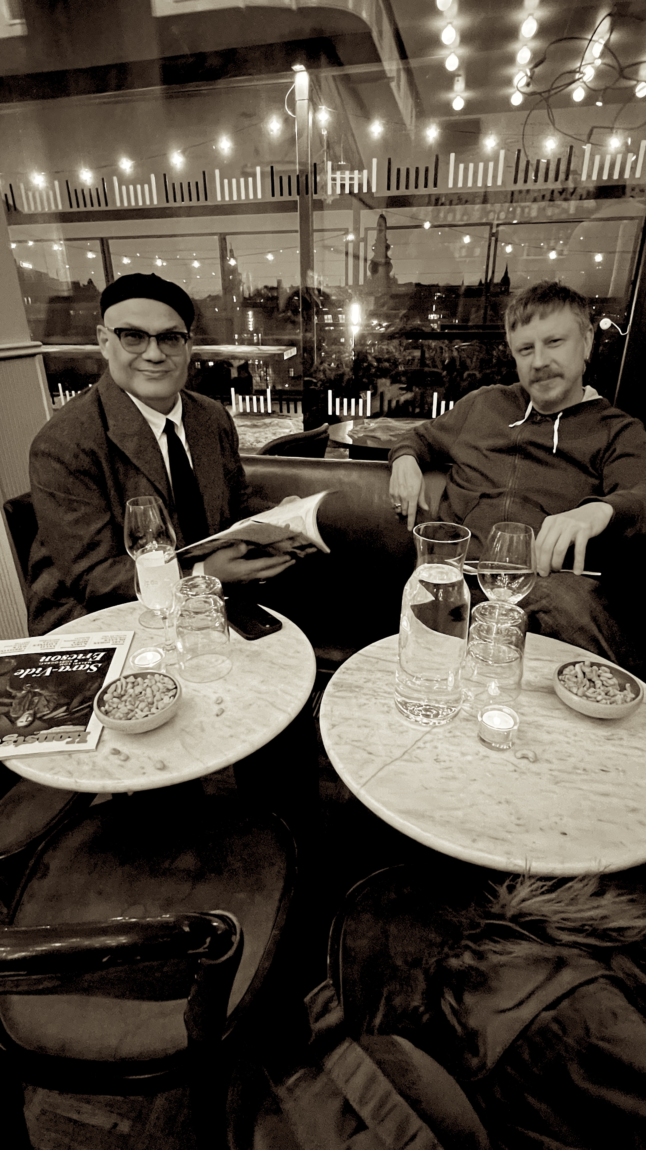 När Konstguidens vårnummer – årets första tryckta utgåva – landade från tryckeriet firade redaktionen med ett kvällsmingel på Bar Zeppelin, högst upp ovanför Gondolen i Stockholm. I den intima baren, där väggarna pryds av väggmålningar och illustrationer av Marie Louise Ekman, samlades konstnärer, gallerister, konsthallar, skribenter och fotografer för att fira in det nya numret.