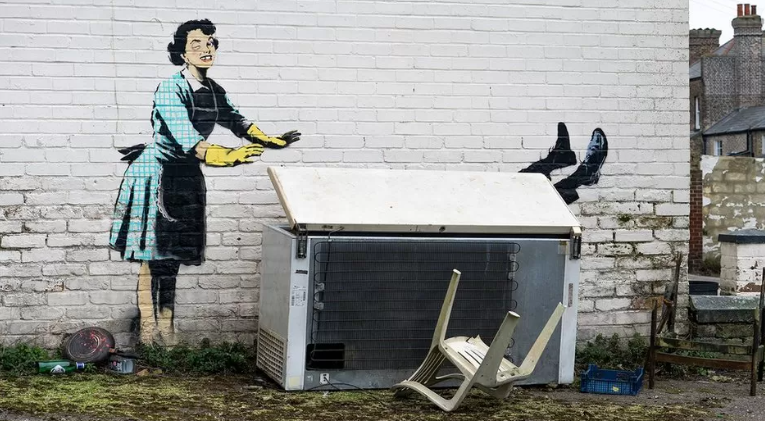 Väggmålningen av Banksy skapade en hel del uppmärksamhet i den lilla staden Margate när den helt plötsligt fanns på plats.