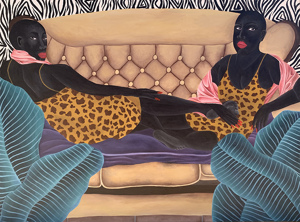 Zandile Tshabalala, Two Reclining Women, 2020 akryl på duk, 122 x 91.5 cm. Courtesy: Zandile Tshabalala Studio.