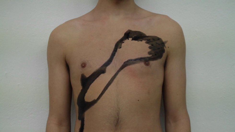 Bordsduken i lin i Afrang Nordlöf Malekian och Iliada Charalambous verk The Taste of Pomegranate (2022–25), är ursprungligen en del av en deltagarbaserad performance som ägt rum på olika platser: Kairo, Leipzig, Jönköping, Sundsvall, Amsterdam, Utrecht, Malmö och Nova Gorica. Deltagarna runt om i världen har suttit kring samma bordsduk för att skala granatäpplen medan konstnärerna läst historiska och personliga berättelser tryckta på duken om denna mytomspunna frukt. På Bonniers Konsthall har de två konstnärerna skapat broderier runt fläckarna som finns kvar, ett intrikat hantverk som liknar en karta. Bordet fungerar nu som ett monument över det som delats, där berättelser, olika språk och recept vävs samman med granatäpplets mytologiska, sensoriska och symboliska värde. Verket lyfter en komplex och fragmenterad familjehistoria. Det gör även Nordlöf Malekians videoverk My Dear Dad Said (2016) , som ger oss en ingång till en tidig, intim performancemetod som Nordlöf Malekian senare har fortsatt med i sitt skapande. Här förmedlar konstnären sin pappas oresonliga inställning till hur sonen ska vara. Verket blottar den sårbarhet som finns i komplexa familjerelationer, både hos den som berättar och den som det berättas om.