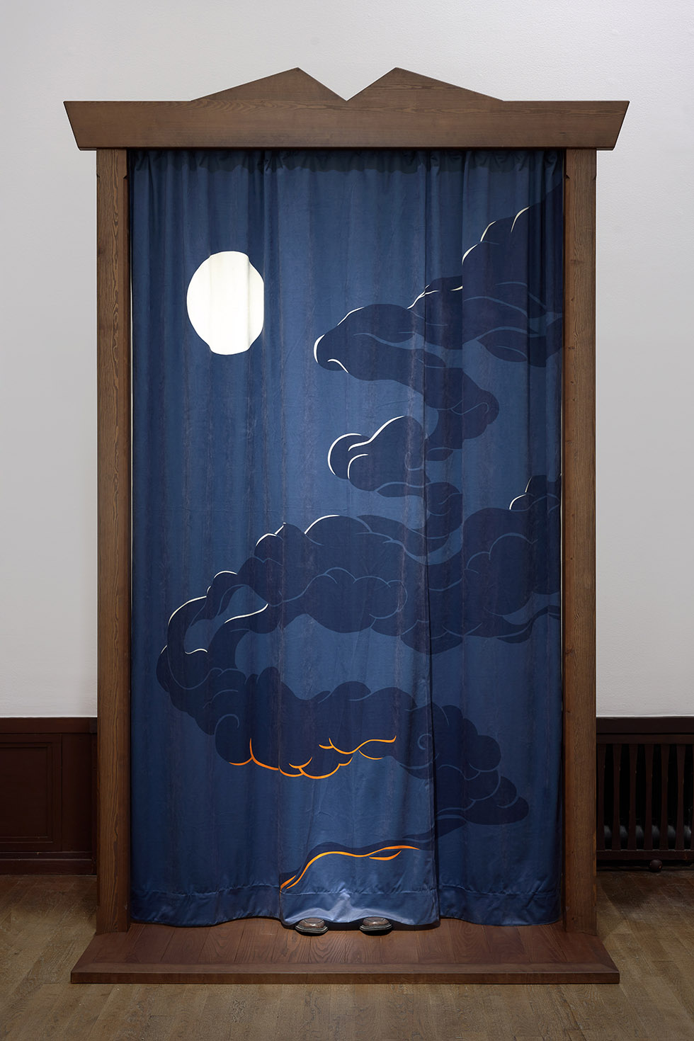 Fingerfärdighet genomsyrar Johan Thurfjells verk. Han målar, snickrar och snidar träskulpturer som genom mekaniska inslag utför enkla, upprepade rörelser. Hans skicklighet med papper och olika sortens pigment är omisskännlig. En vägg täcks med rader av tavelramar. Först osynliga motiv, som omsorgsfullt målades med kaffe, träder spöklikt fram. Den blåa gardinen, som på olika sätt återkommer, är i sig en symbolisk gräns. Ett par herrskor sticker ut och rör sig under ett draperi, som om någon gömde sig bakom det. Ljudet av ett ekollon, som oväntat faller ner i en metallhink, framkallar en rysning. Det visuella samspelar med det akustiska i en fantasieggande scenografi som besökare fyller med sin närvaro.