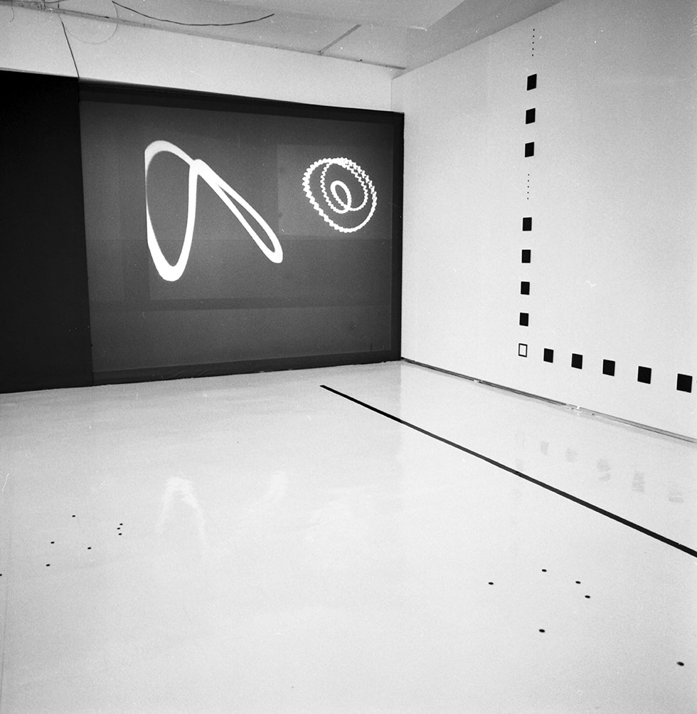 CC Hennix, ”Lincos (For Intergalactic Communications)”, 1973/2018, Laserskurna, perforerade stål paneler, LED lampor, Stålramar. Foto: Michael Yu