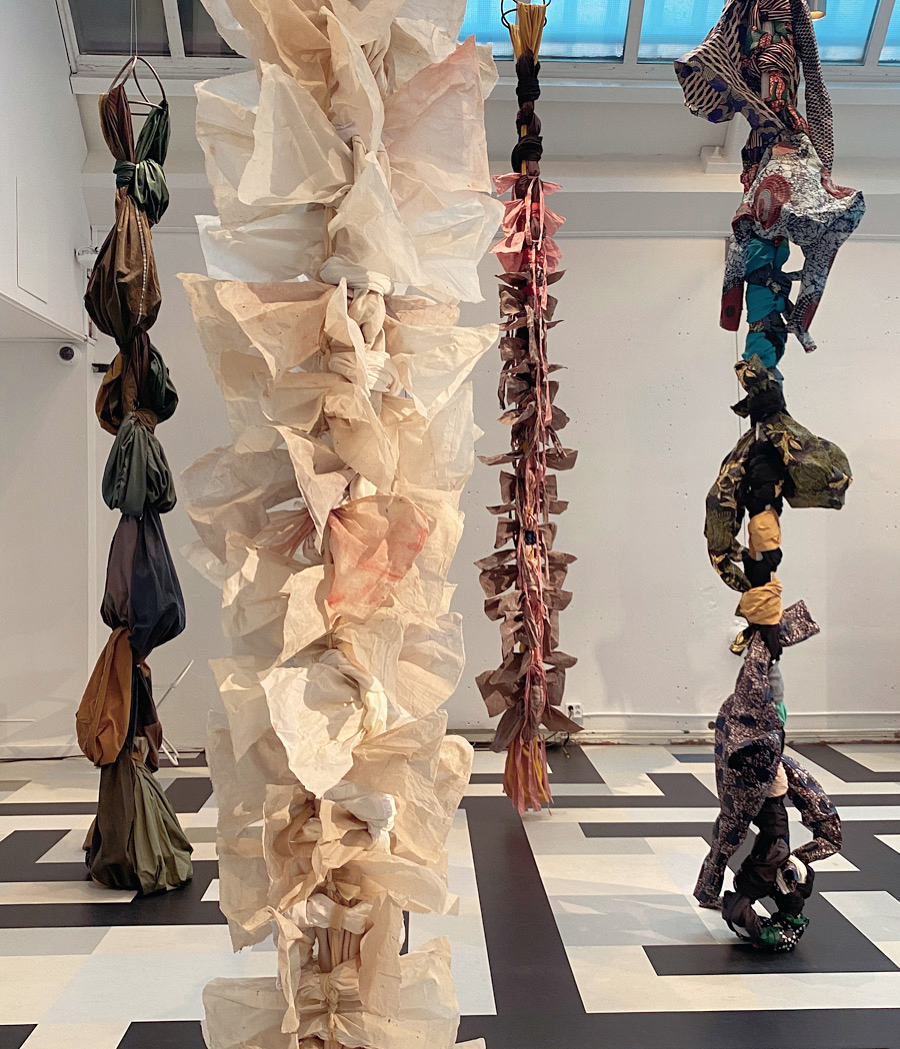 Materialen finns i hennes ateljé, i en utställning eller i en performance och dessa är i ständig omvandling beroende i vilken fas av en process Mag är i.