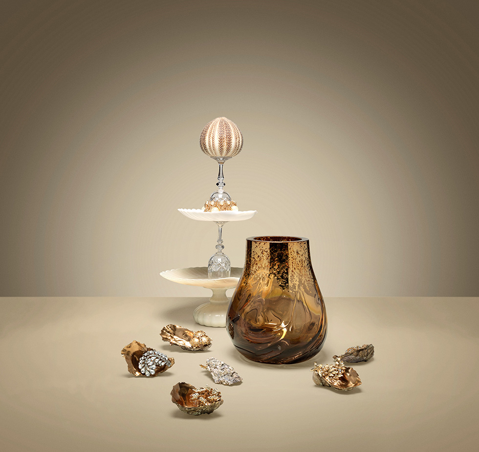 Wild optics v gold, h25,5 ø21 cm, the queen of the sea, h53 ø28 cm, the world is my oyster, ca h4 b10 cm