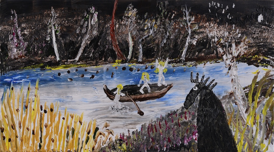 Carl Johan De Geer, Drakflygaren- fritt efter Sven X:et Erixson, akryl på duk, 32 x 45 cm