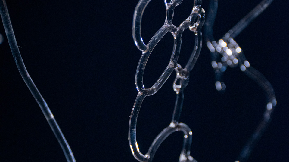 Frida Lundén Mörck arbetar i gränslandet mellan konst, konsthantverk och rumslig gestaltning. Glas är hennes huvudsakliga material – ett material som fascinerar genom sin ambiguitet; dess förmåga att vara både hårt och mjukt, kontrollerbart och oberäkneligt.