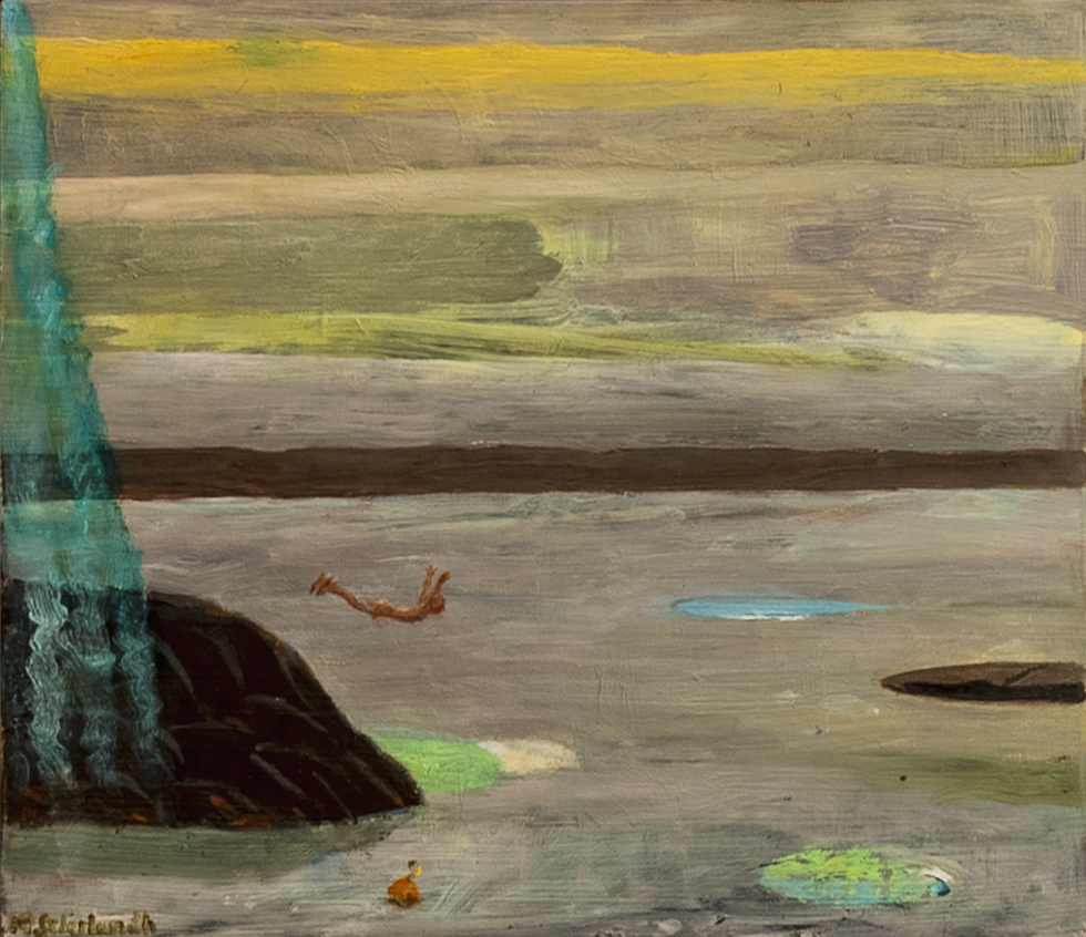 I Söderlundhs måleri finns alltid en närvaro av något oväntat, som om bilden när som helst kan ta en annan riktning.