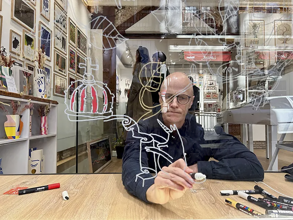 I utställningen visas ett urval av hans berömda skissböcker tillsammans med många andra teckningar – både fria verk och beställningar. Bland uppdragen finns allt från tidningsillustrationer och pussel till skivomslag, med uppdragsgivare som Amnesty, Atelier Choux Paris och Norges Statsbaner.